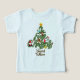 Gender Neutral Christmas kid's t-shirt (one year old) titled "My First Christmas" in a form of a Christmas tree decorated with cute santa clauss, raindeer, angel, sock etc. Customized name of the kid is in the form of tree trunk.