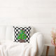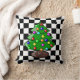 Christmas Tree on Black and White Chequered Backgr Cushion