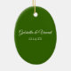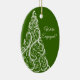 Commemorate the day you accepted his marriage proposal with the elegant Christmas Tree on Green Winter Engagement Ornament. This festive custom we're engaged ornament features an intricate swirly white xmas tree design on a festive green background.