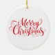 This Christmas tree ceramic ornament is shown in a round shape with a festive holiday Christmas deer print.