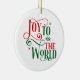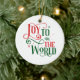 This Christmas tree ceramic ornament is shown in a round shape with a festive holiday Joy to the world print.