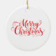 This Christmas tree ceramic ornament is shown in a round shape with a cute gingerbread man print.