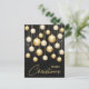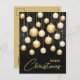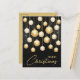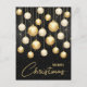 Business greeting postcards feature Merry Christmas under gold and white Christmas tree ornaments on a black background on the front and your personalised thank you message, names and logo on the back.