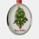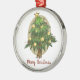 Oval ornament with red ribbon hanger. Original Christmas tree design with red "Merry Christmas!" message beneath.