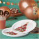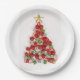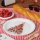 A Christmas tree made up of ornaments and gift packages decorates this pretty paper plate