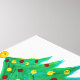 Design features an artwork of Christmas trees created with water-based paints.