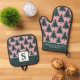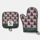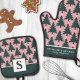 Christmas Tree Pattern Pink Green Monogrammed Oven Mitt & Pot Holder Set