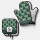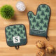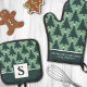 Christmas Tree Pattern Sage Green Monogrammed Oven Mitt & Pot Holder Set