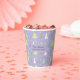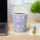 This paper holiday cup features an offset pattern of Christmas trees of all different styles and modern colours of violet, lime green and white. A template is provided for you to add your own favourite holiday greeting, name and/or other text. Search ID175 to see other products with this design.