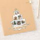 Personalised Christmas stickers featuring a Christmas tree shaped photo collage with 6 pictures alongside elegant minimalist typography in gold colour.