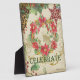 COLOR PALETTE: Tan, cream, green, red and gold. DESIGN COLLECTION: This is an original art design from Audrey Jeanne Roberts, made from hand painted water colour images of a beautiful hand painted poinsettia Christmas wreath, holly berry garland, holly branches with leaves, pine cones, leaf swirls, red modern snowflakes and word art. This design has an inspirational sentiment that says, "Celebrate" and has green swirls accenting the text with a golden "glitter" effect. Perfect for Christmas decor as you can easily and safely pack them away after the holidays! Available in 3 versions: a non-personalised, a personalised version with your family name (or to personalise for a gift for another family) and as a photo frame to display your family photo. Use all 4 designs to display 4 different family photos over the years on your fireplace mantel!