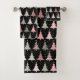 Christmas Tree Pink & Green with Black Background Bath Towel Set