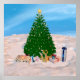3D digital render of a Christmas tree and presents on a sky and snow background