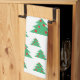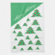Christmas Tree Red Green Happy Holidays Pattern kitchen towel. Festive design with Christmas trees with red balls and snowflakes on the green. The colours are holiday red and green. You can change the text.