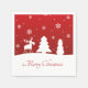 Modern minimalist simple Christmas illustration featuring white silhouettes of reindeer, tree, snowman and snowflakes with Merry Christmas greeting on a red background.