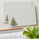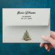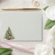 Sage green background. Personalise and add a name and your return address. The name is written with a modern and trendy handlettered style script. Decorated with a watercolored Christmas tree.