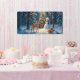 Christmas Tree Scene Cute Deer Fawn Snowman Banner