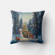 Christmas Tree Scene Cute Deer Fawn Snowman Cushion