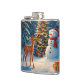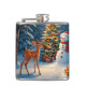 Christmas Tree Scene Cute Deer Fawn Snowman Hip Flask