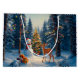 Christmas Tree Scene Cute Deer Fawn Snowman Large Gift Bag