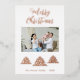 Christmas Tree Script Minimalist Family Photo Foil Holiday Card. Three simple grey Christmas trees and Merry Christmas text are in real gold rose foil. Customise with your text and add your photo.
