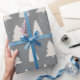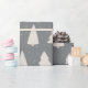 This Christmas wrapping paper features white pines silhouettes and little white snowflakes on an elegant silver grey background.
