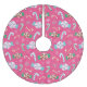 Beautiful pink and aqua Christmas tree skirt has a pattern of candy canes and sugar drops on this candy fantasy dream design holiday decor item for your home.