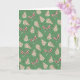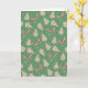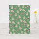 These customisable Christmas cards feature a pattern of white christmas tree snack cakes, red and white striped peppermint bows, and little red stars against a moss green background.