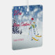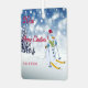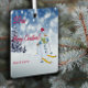 Christmas Metal Square Ornament with snowmen on blue background. Winter tree and snowflake.