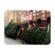 Features an original colour photograph of a Christmas tree stand on the Upper West Side. Photographed in Manhattan, New York City.