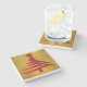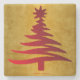 Christmas Tree Stencil Red on Gold Stone Coaster