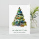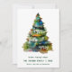 Christmas Tree Watercolor Merry Jolly Happy Holiday Card. Happy, merry, jolly wishes and your family name - add your text. Artistic watercolor drawing of a colourful Christmas tree. Festive design for your Christmas card. Personalise the card with your text.