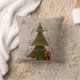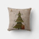 Fun, whimsical Christmas tree with presents underneath. Background is a faux linen look in tan and there are rustic stars in the sky. Reverse side has the same tan background with holly leaves and berries and it says "Happy Holidays". Such a fun pillow for decorating your country home this Christmas!