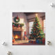 Christmas tree with presents and a fireplace holiday card