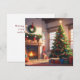 A personalised Christmas Card featuring a decorated room that is complete with a Christmas tree, a fireplace, and stockings hanging from the mantle.