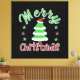 Funny Christmas tree with Santa hat illustration and text Merry Christmas.