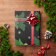 A decorative yet simple motive showing repeated pattern of rather huge Christmas trees. Trees are digitally drawn, they have various shades of green. There is a shiny star in top of each tree, and there are also lots of stars glowing against the solid black background. This design exists in several versions, and there are also matching tissue paper, cards, postal stamps and gift tags available.