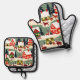 Christmas tree Xmas village snowing pic Oven Mitt & Pot Holder Set