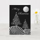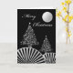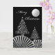 Christmas Trees and Moon, Modern Silver Design Card