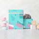Celebrate the season with wrapping paper that embodies the joy and excitement of Christmas. The harmonious blend of blue, pink, white, and green brings a festive feel with a contemporary twist, making your gifts memorable and special. Make your presents shine with this beautiful, modern holiday design that perfectly captures the spirit of the season.