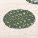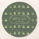 This paper coaster design features a pattern of stylised Christmas trees and snowflakes in light green on a darker moss green background. Optional 'Happy Holidays' text and a label have been provided to add your name and/or other text. Search ID861 thru ID864 to see additional colour options and other products in this modern, Christmas design set.