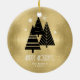 This ceramic ornament features a beautiful arrangement of stylised Christmas trees and snowflakes in black on a textured-effect, gold background. Optional 'Happy Holidays' text and a template have been provided to add your name and/or other text. Search ID861 thru ID864 to see additional colour options and other products in this modern, Christmas design set.