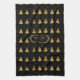 This kitchen towel design features a pattern of stylised Christmas trees and snowflakes in shades of gold on a black background. Optional 'Happy Holidays' text and a label have been provided to add your name and/or other text. Search ID861 thru ID864 to see additional colour options and other products in this modern, Christmas design set.