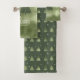 This towel set features a pattern of stylised Christmas trees and snowflakes in dark moss green on a textured-effect green background with the opposite colours in a seamless pattern on the larger towel. Optional 'Happy Holidays' text and a template have been provided to add your name and/or other text. Search ID861 thru ID864 to see additional colour options and other products in this modern, Christmas design set.