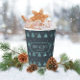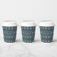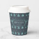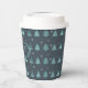 This paper cup features a pattern of stylised Christmas trees and snowflakes in shades of watchet blue on a dark teal blue background. Optional 'Happy Holidays' text and a label have been provided to add your name and/or other text. Search ID861 thru ID864 to see additional colour options and other products in this modern, Christmas design set.