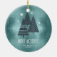 This ceramic ornament features a beautiful arrangement of stylised Christmas trees and snowflakes in dark teal on a textured-effect, watchet blue background. Optional 'Happy Holidays' text and a template have been provided to add your name and/or other text. Search ID861 thru ID864 to see additional colour options and other products in this modern, Christmas design set.