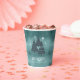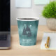 This paper cup features a beautiful arrangement of stylized Christmas trees and snowflakes in deep teal on a textured-effect background in shades of watchet blue. Optional 'Happy Holidays' text and a template have been provided to add your name and/or other text. Search ID861 thru ID864 to see additional color options and other products in this modern, Christmas design set..