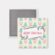 A magnet with a festive christmas pattern on a cream coloured background. Illustrations of pastel coloured, greenish-blue, christmas trees and pastel pink baubles and bows in a repeating pattern. In the centre a cute whimsical frame in a handdrawn style which says Merry Christmas in the centre. Has a nice retro flair.