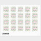 A sticker with a festive christmas pattern on a cream coloured background. Illustrations of pastel coloured, greenish-blue, christmas trees and pastel pink baubles and bows in a repeating pattern. In the centre is a whimsical handdrawn frame which says Merry Christmas with your personalised name.