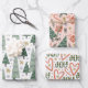 Elegant green trees, snowflakes, candy canes, presents and the word "Joy* make your presents stand out under the tree!